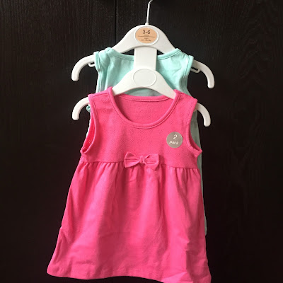 Mint & Pink Dresses - These two dresses were in the sale bit and were only £4. The Mint one is plain and the Pink one has a bow in the middle and little heart detail on the top. I thought the Mint was an colour that you don't really see around in babies clothes.